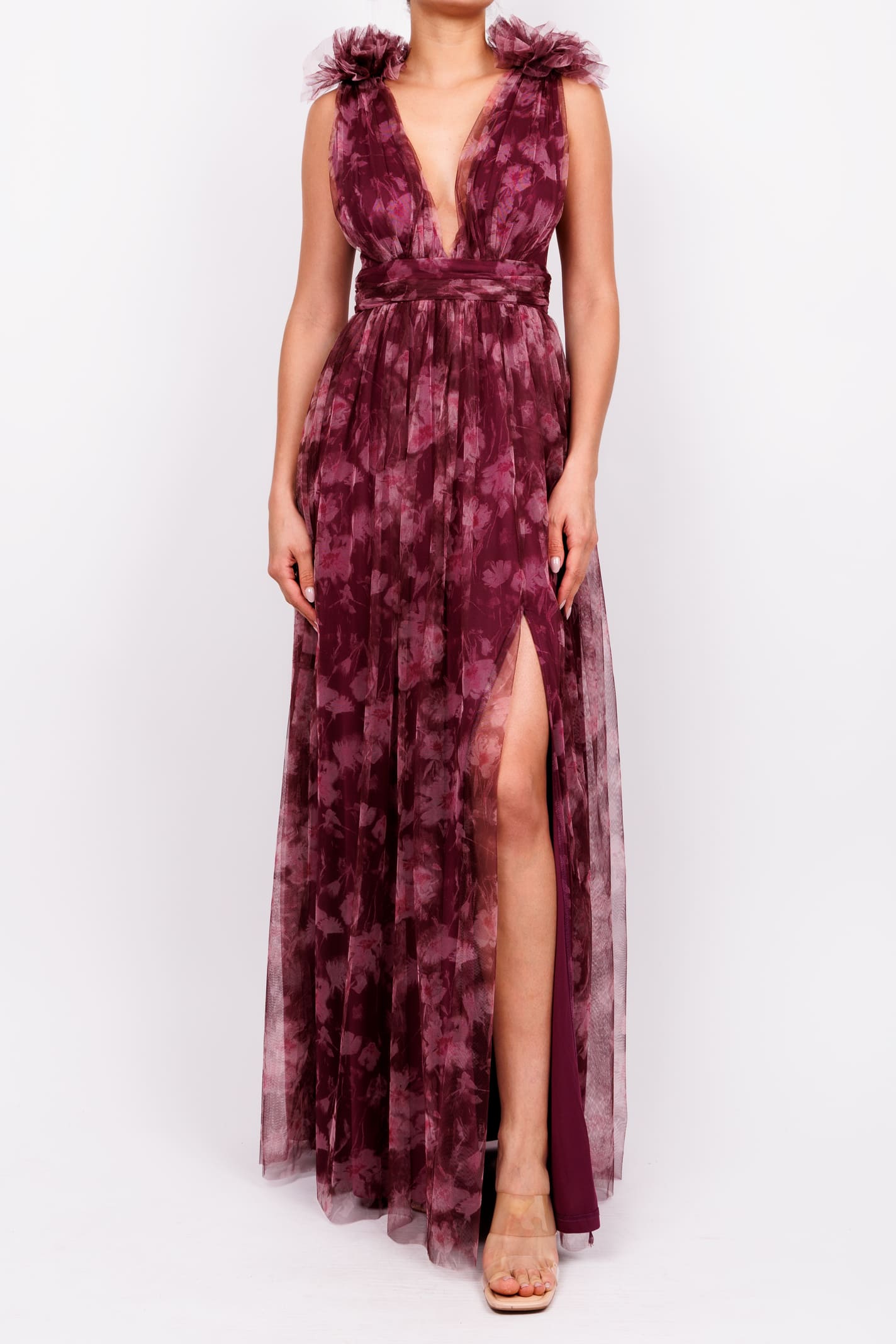 Vestido v print mesh morado II