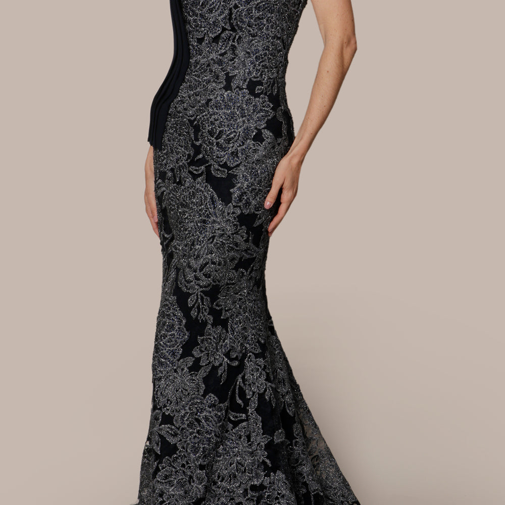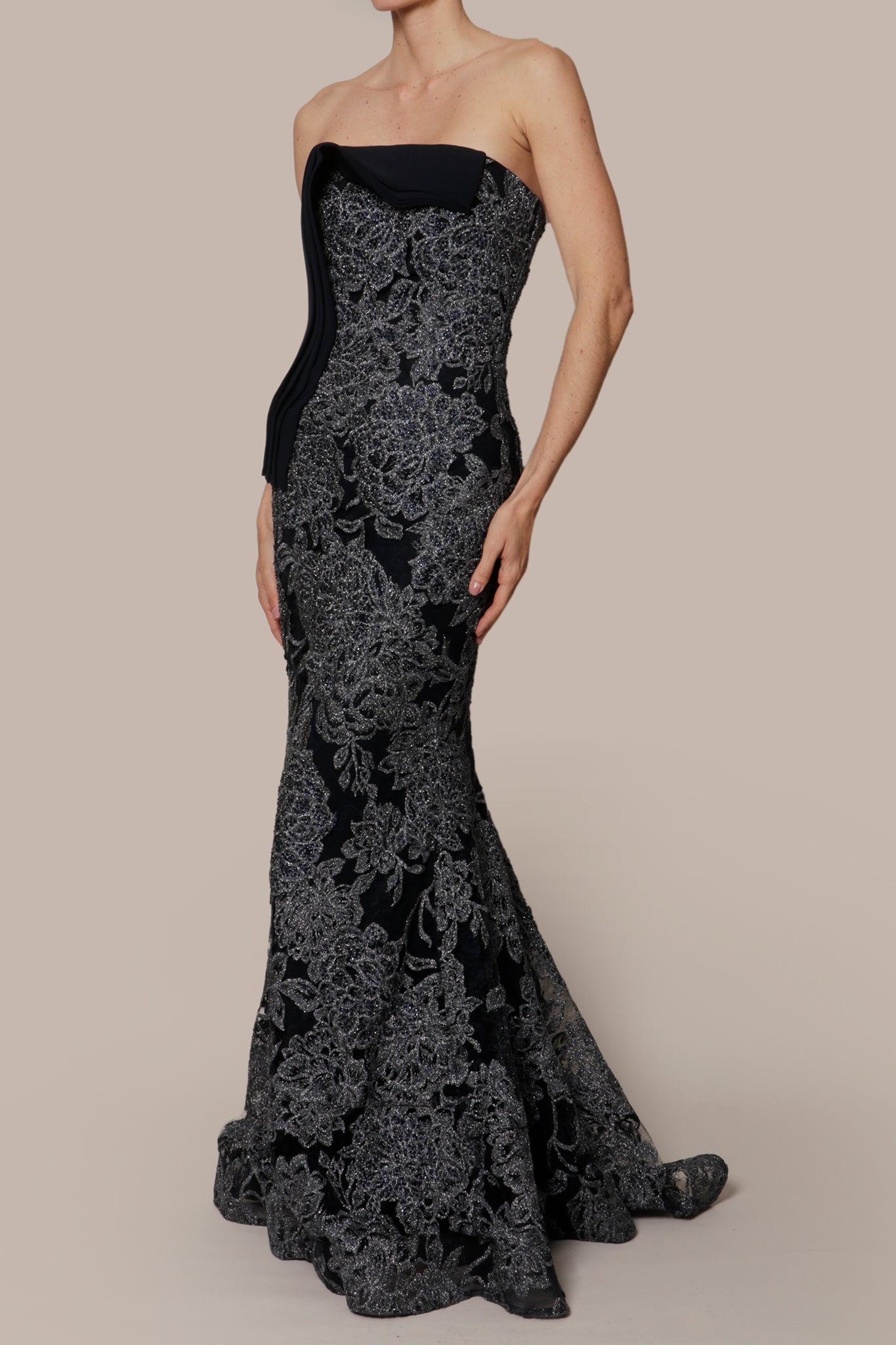 Vestido strapless flores azul marino