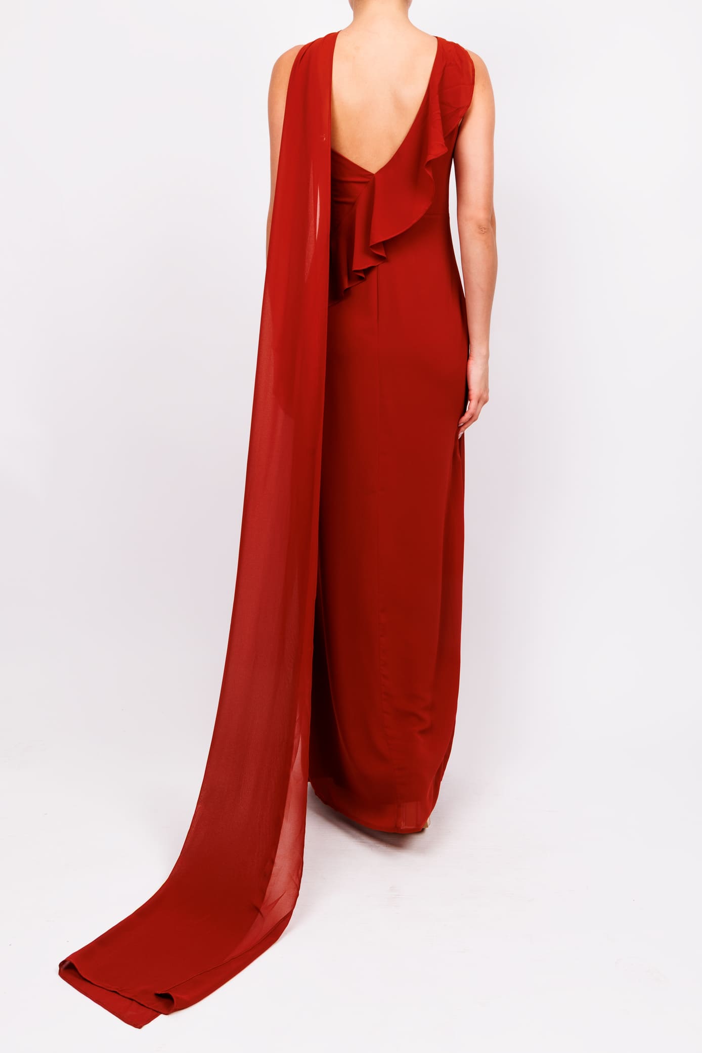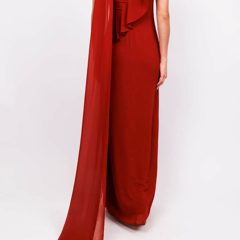 Vestido con olan en hombro ladrillo