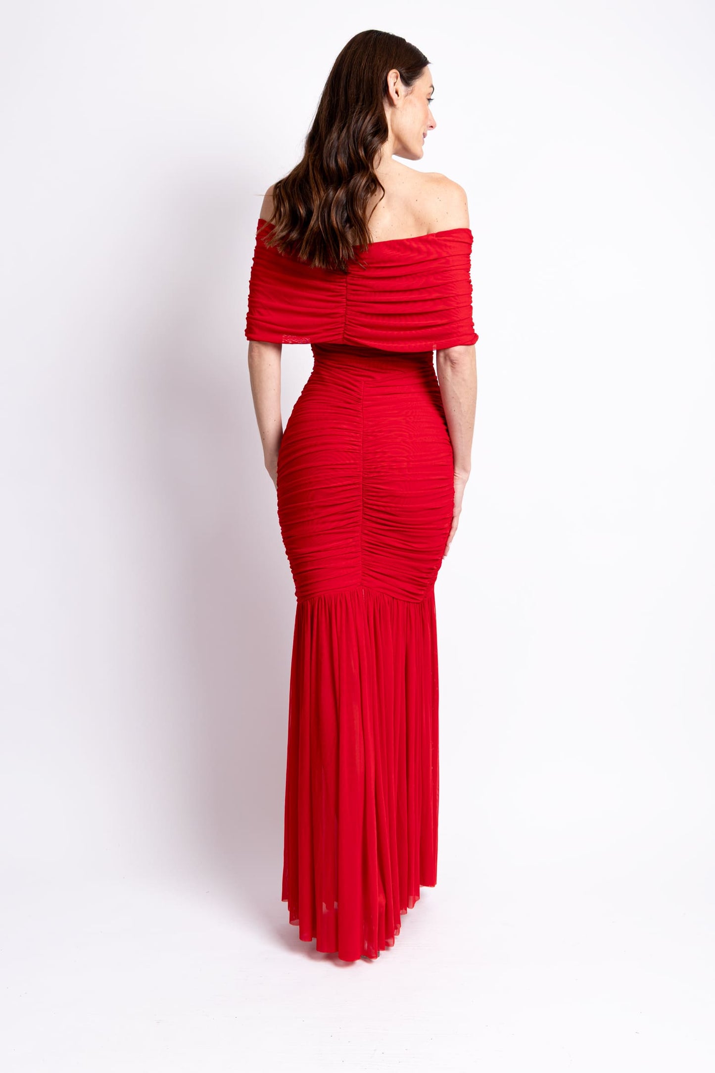 Vestido off the shoulder mesh licra rojo