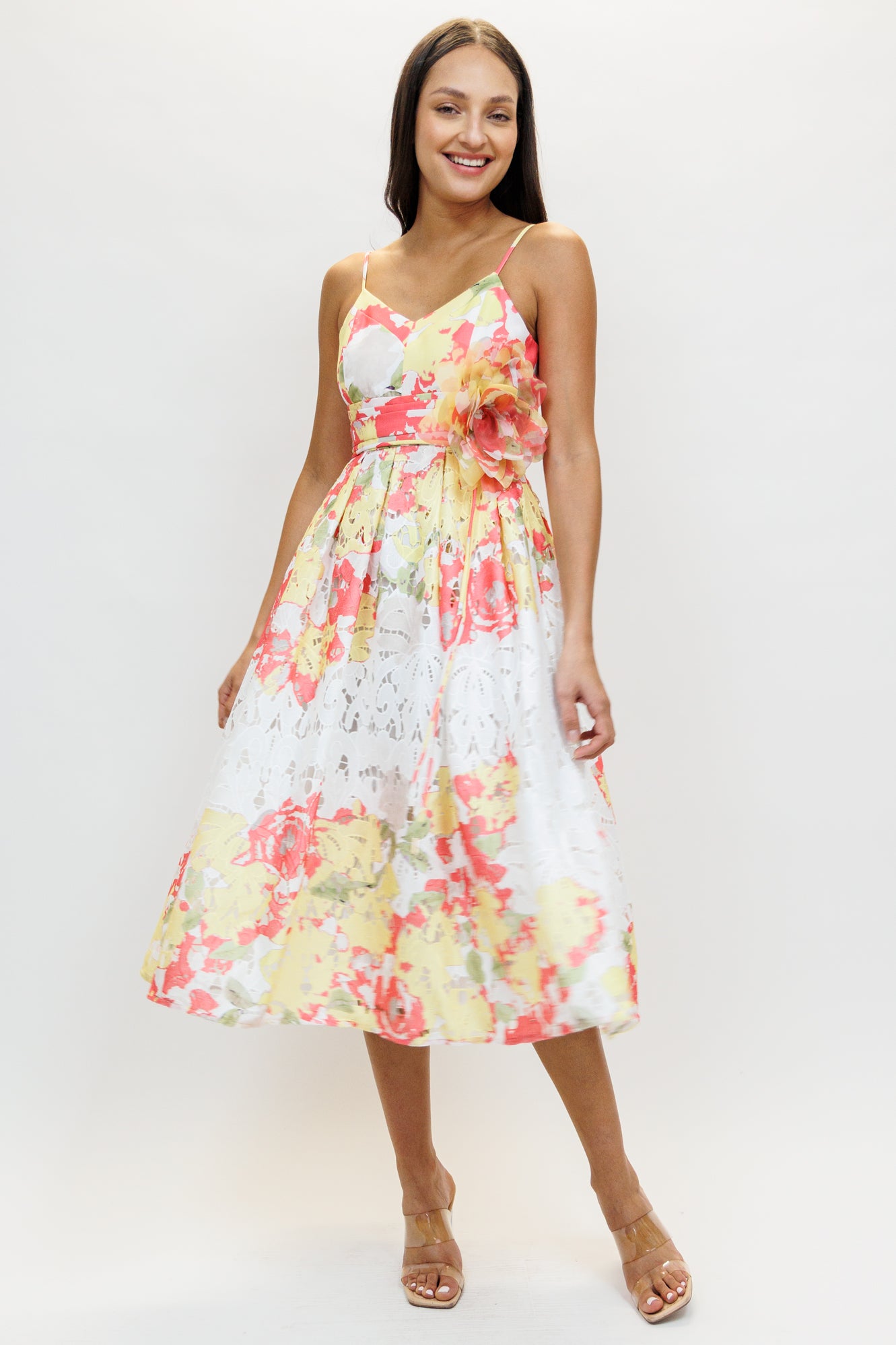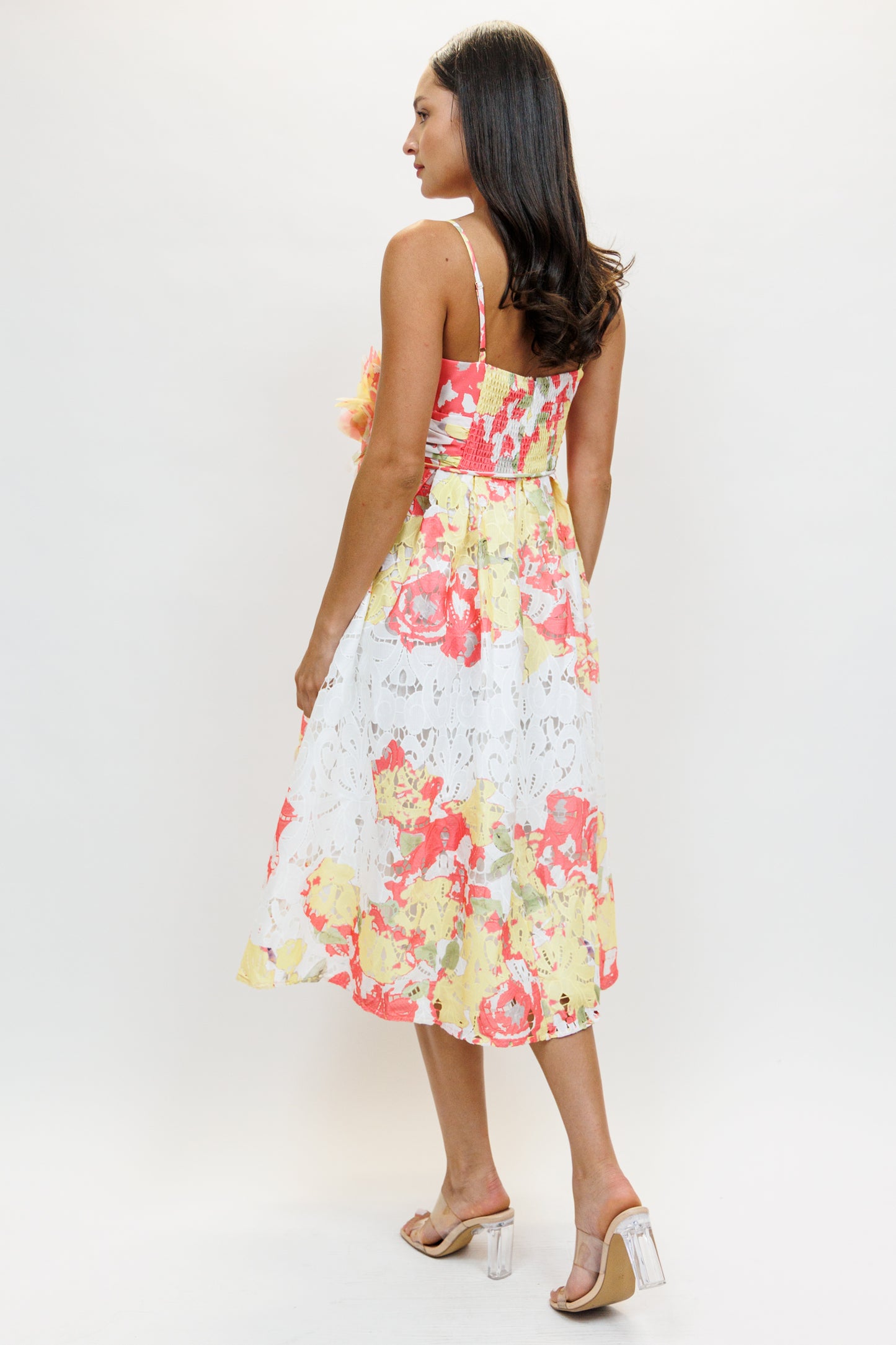 Vestido midi de encaje print rosa III
