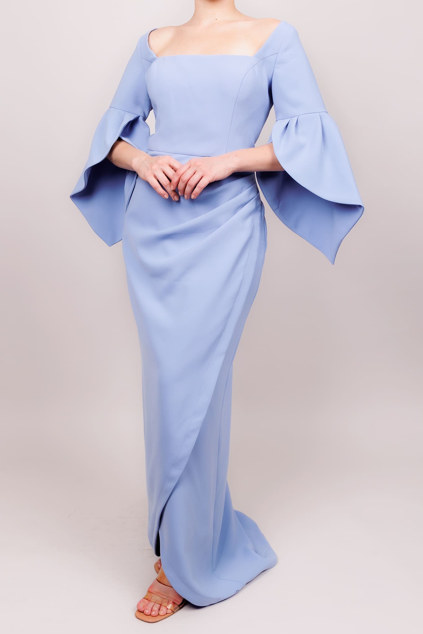 Vestido con manga acampanada azul púrpura