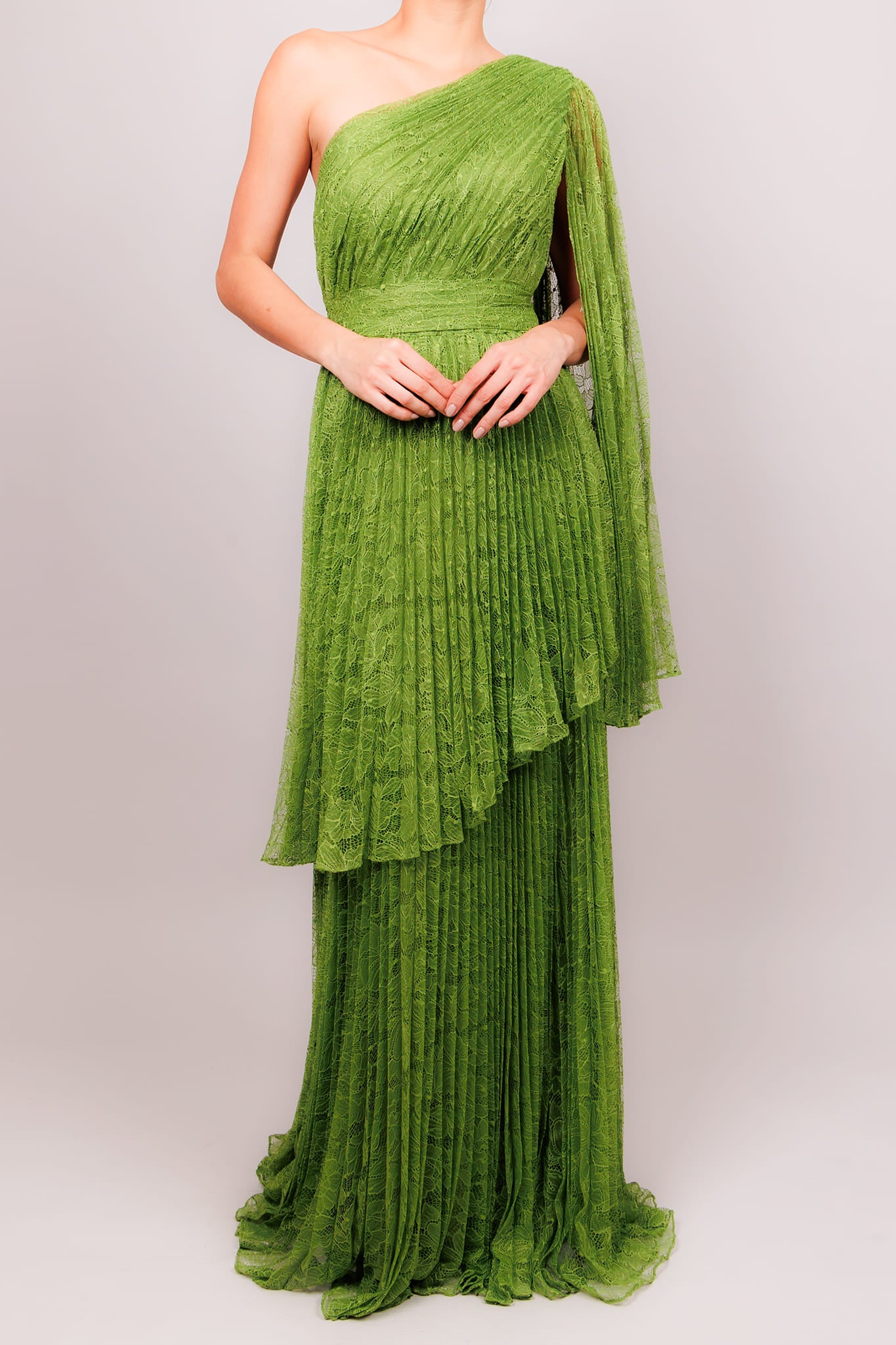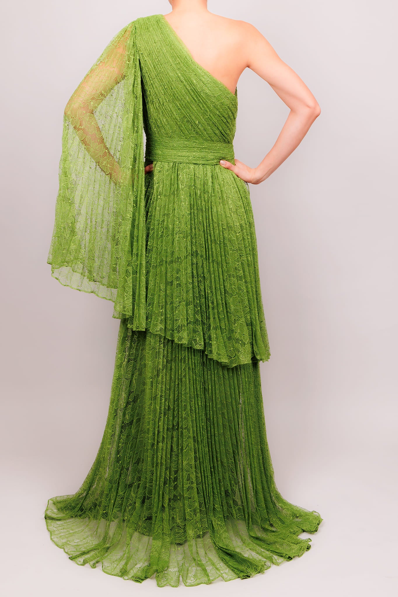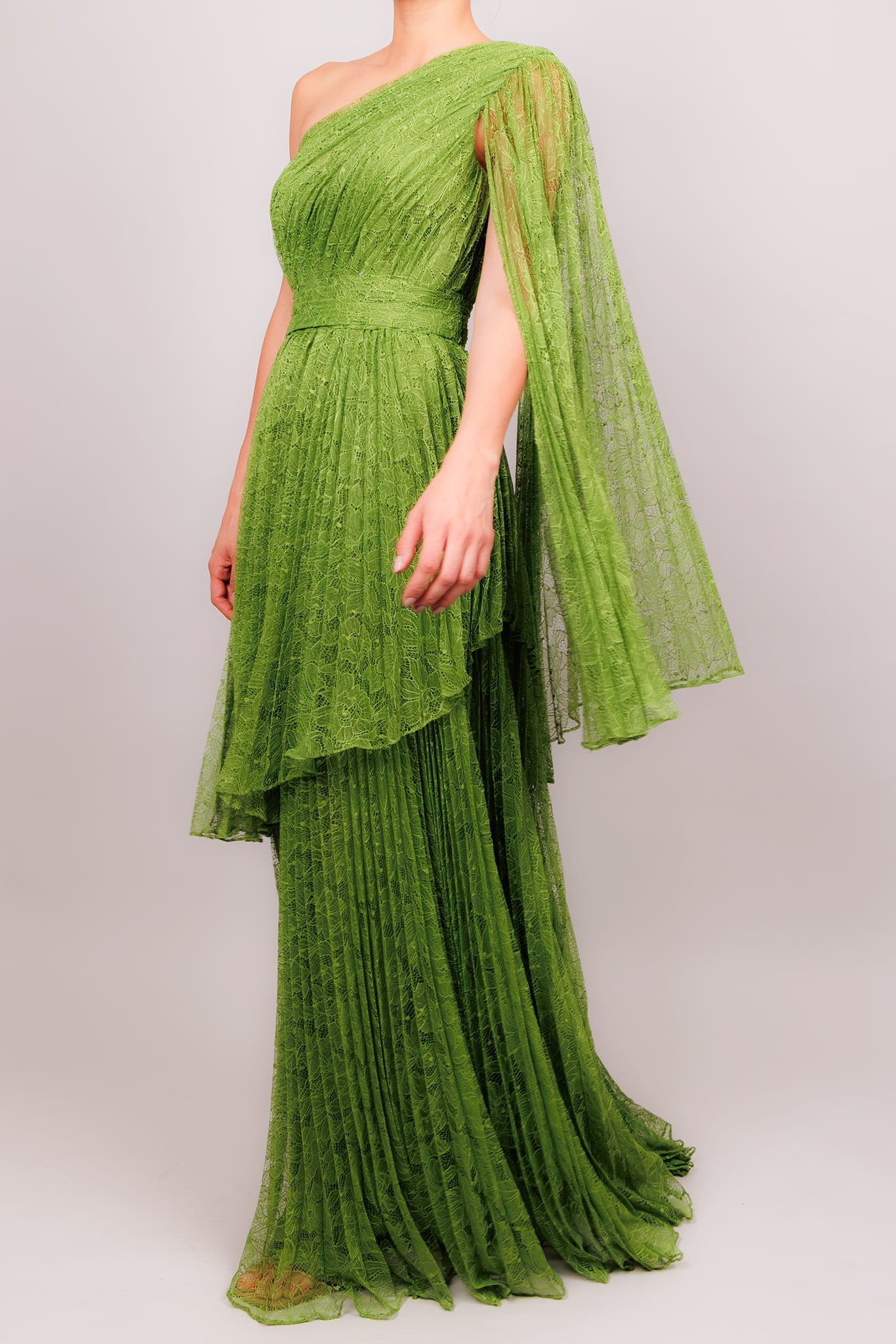 Vestido una manga plisado verde