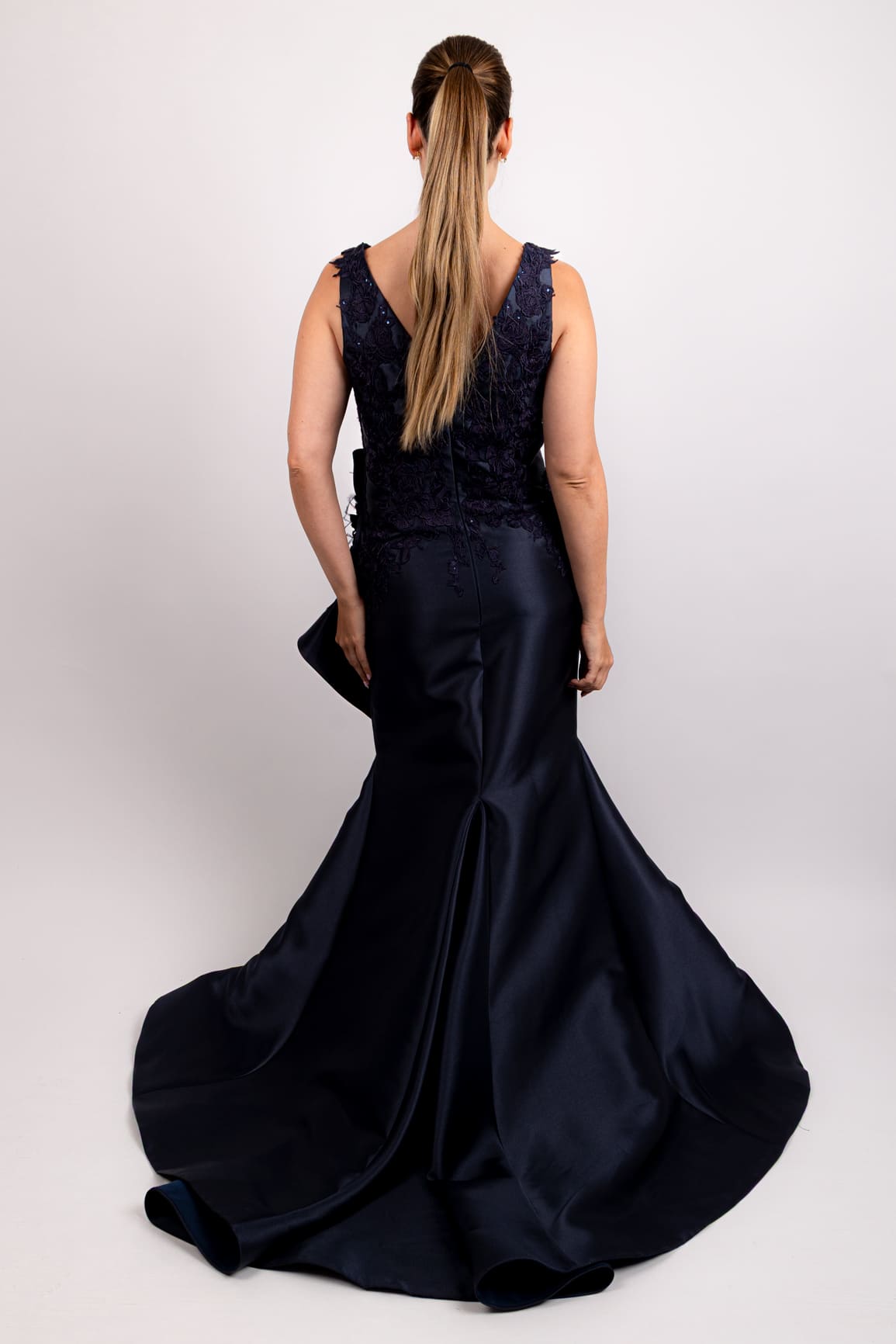 Vestido v bordado encaje azul marino II