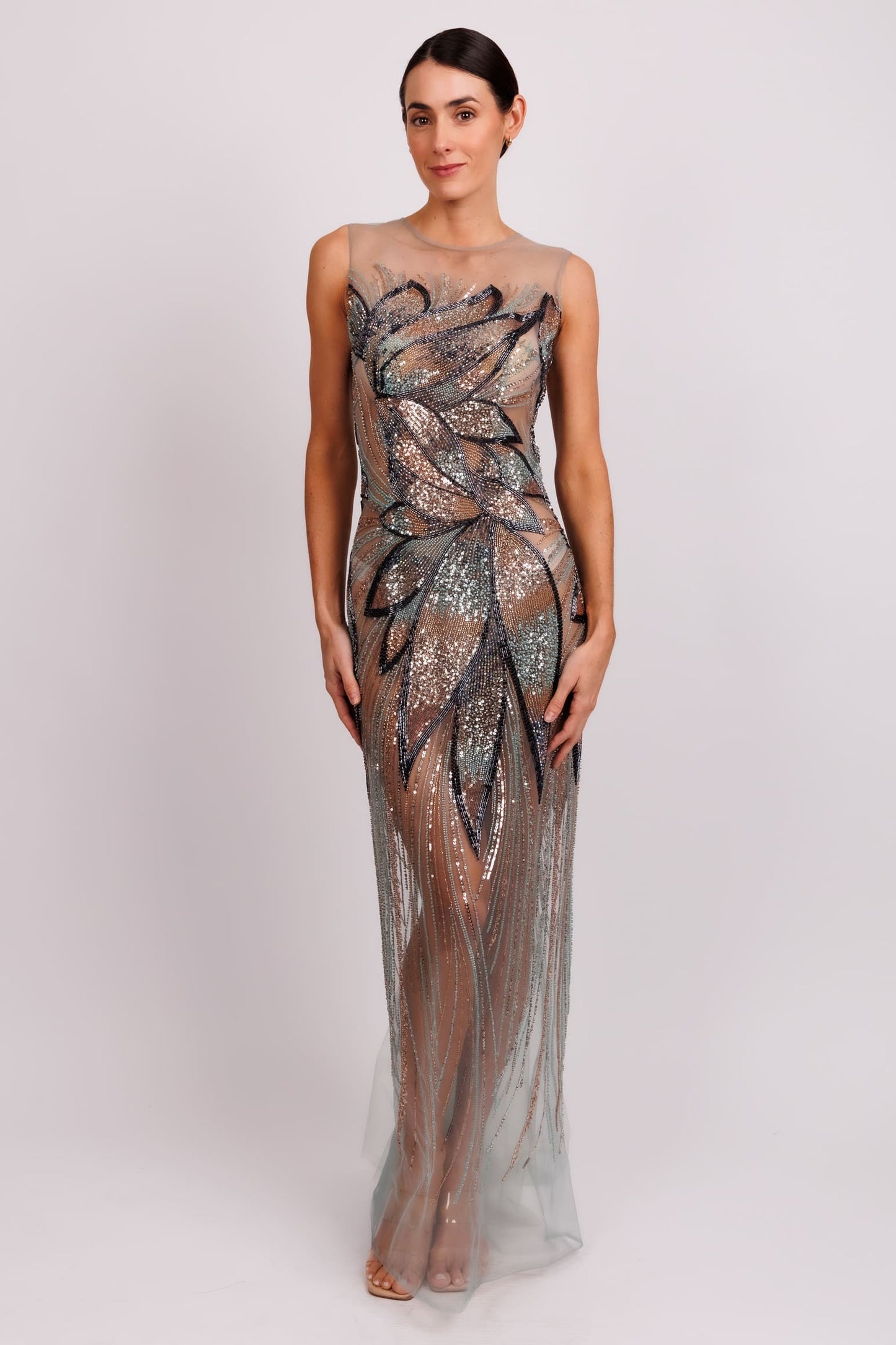 Vestido halter bordado verde azulado