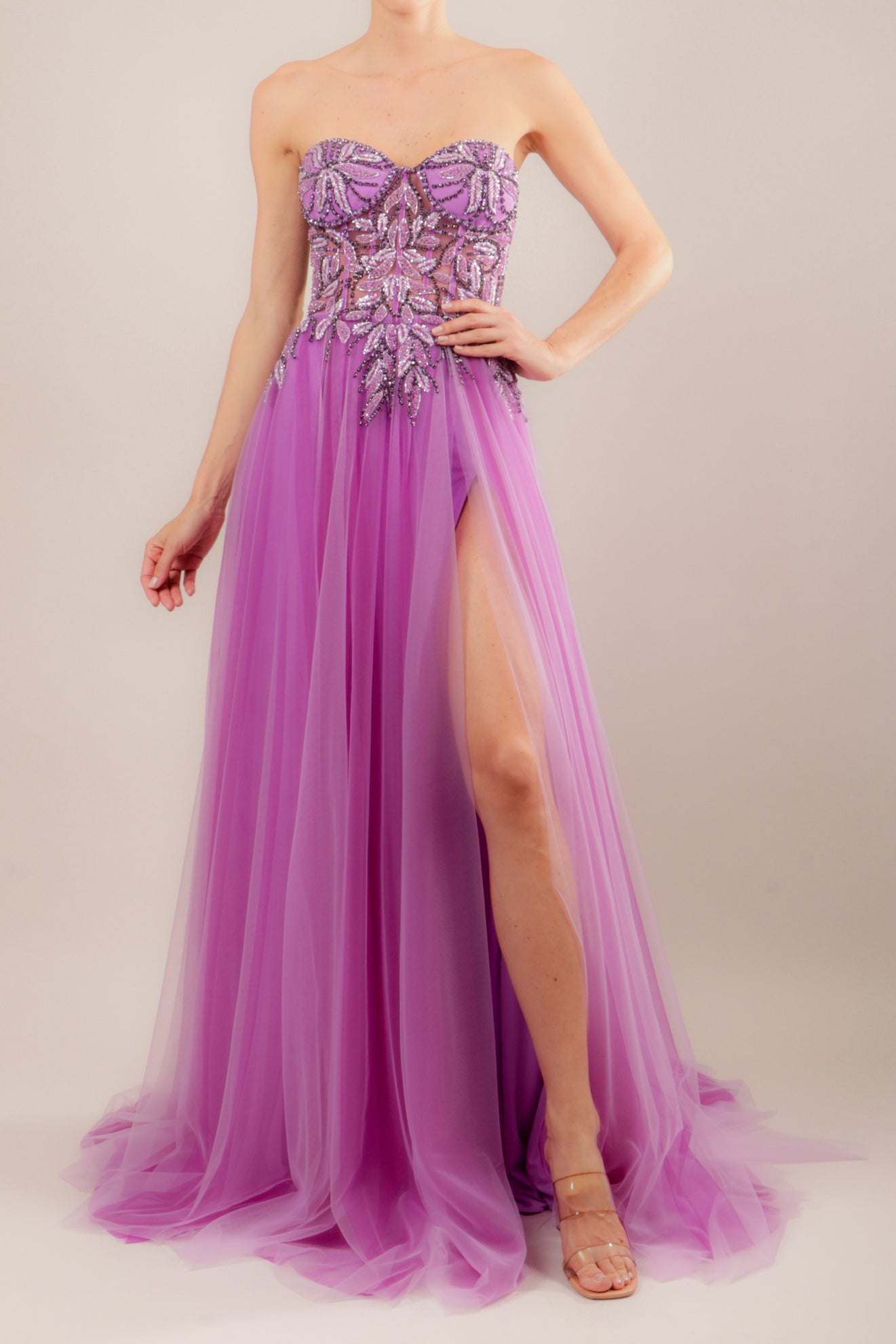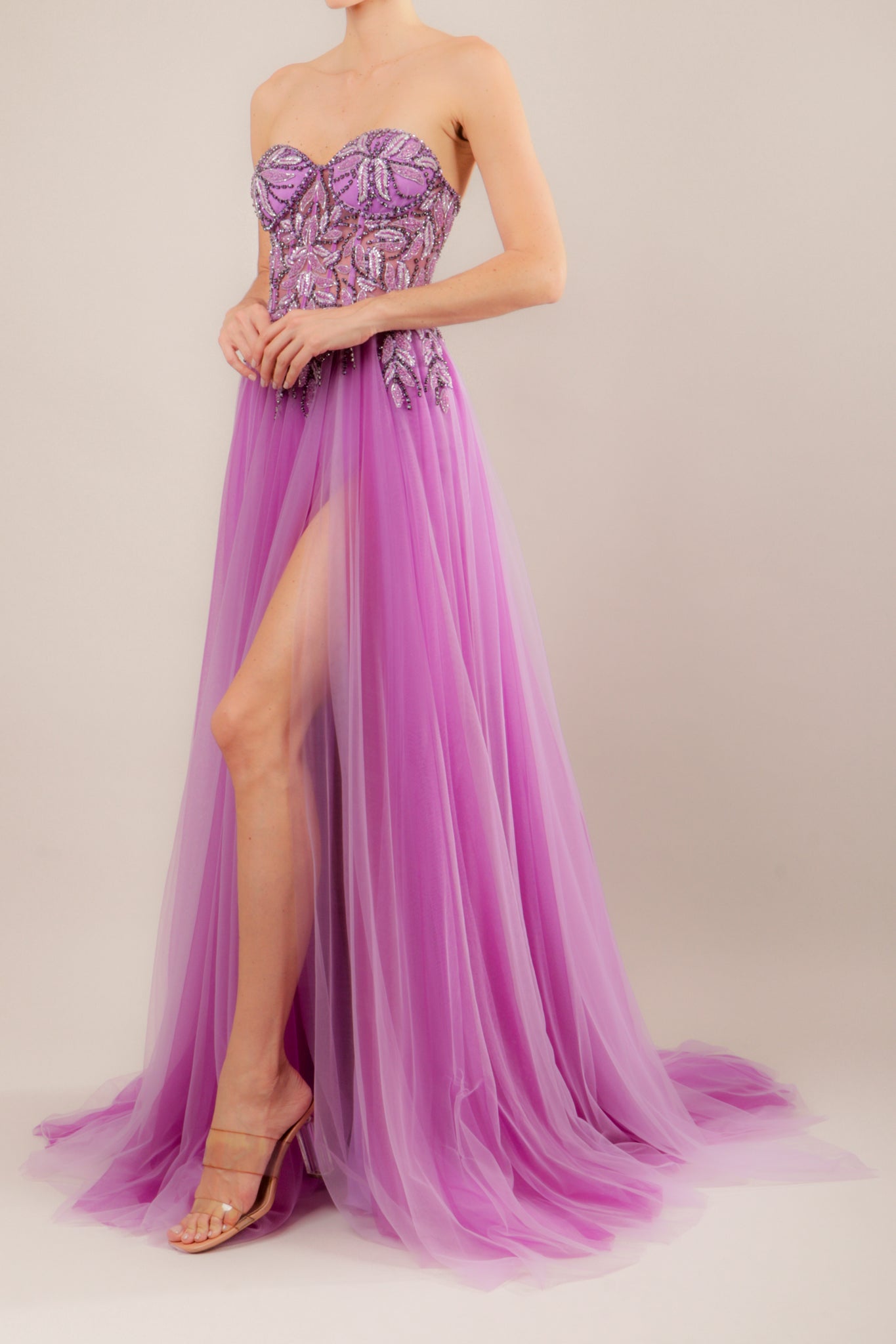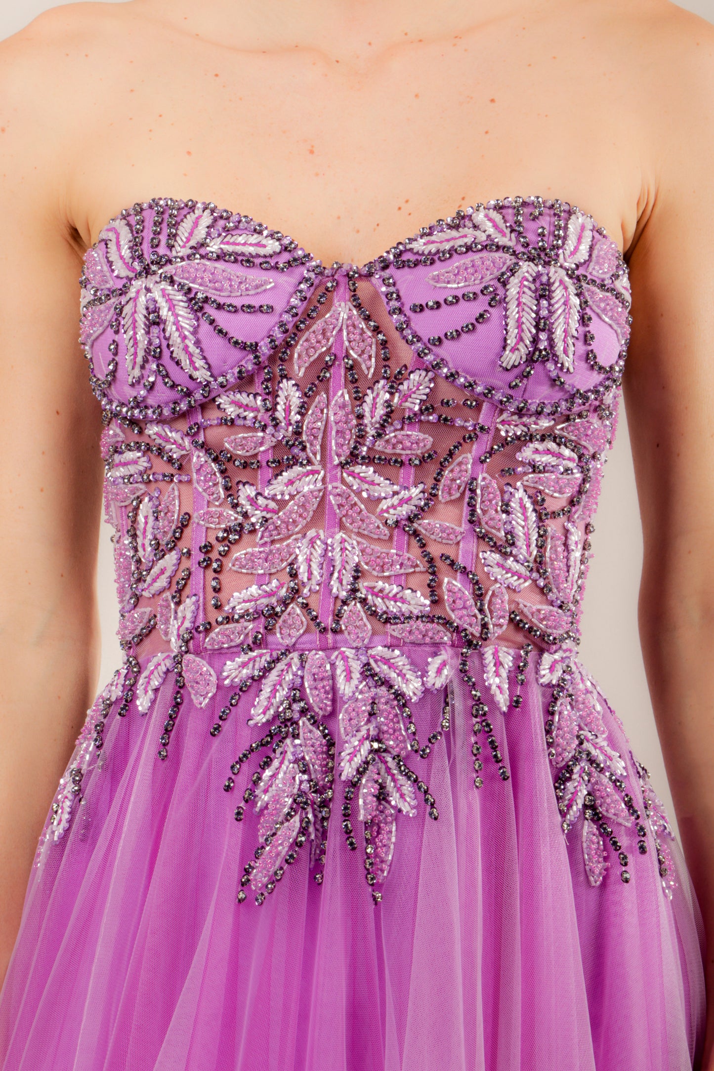 Vestido bordado tipo bustier lila