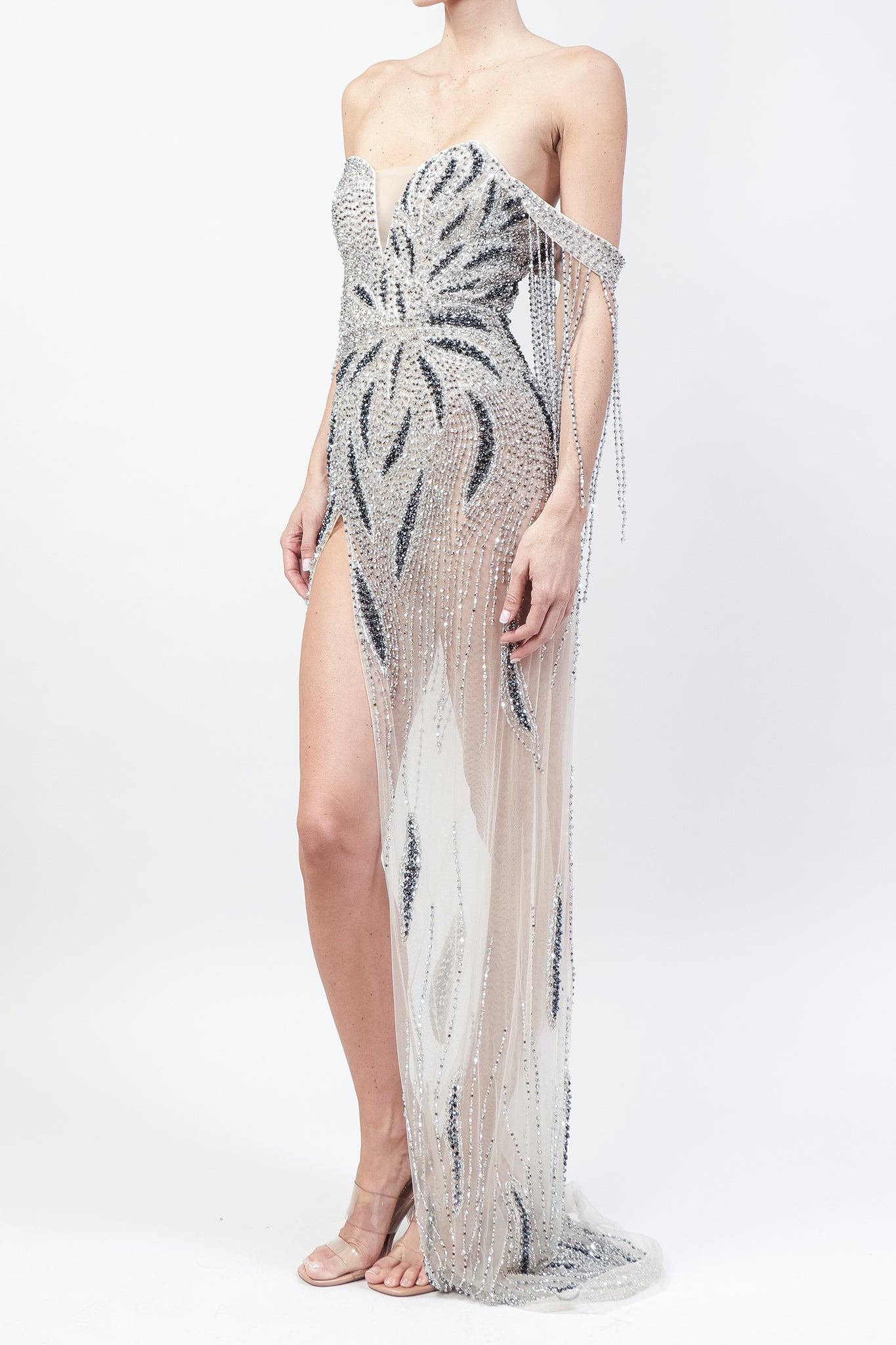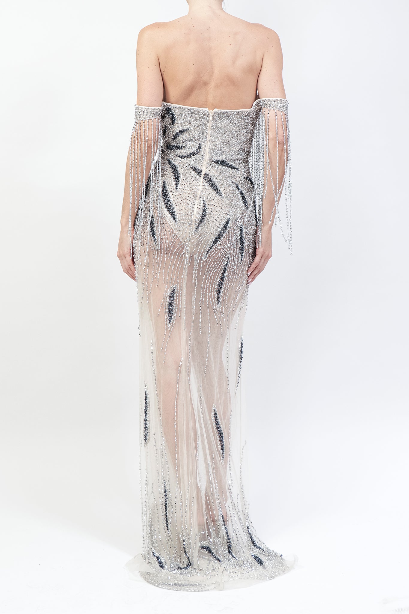 Vestido bordado con transparencias