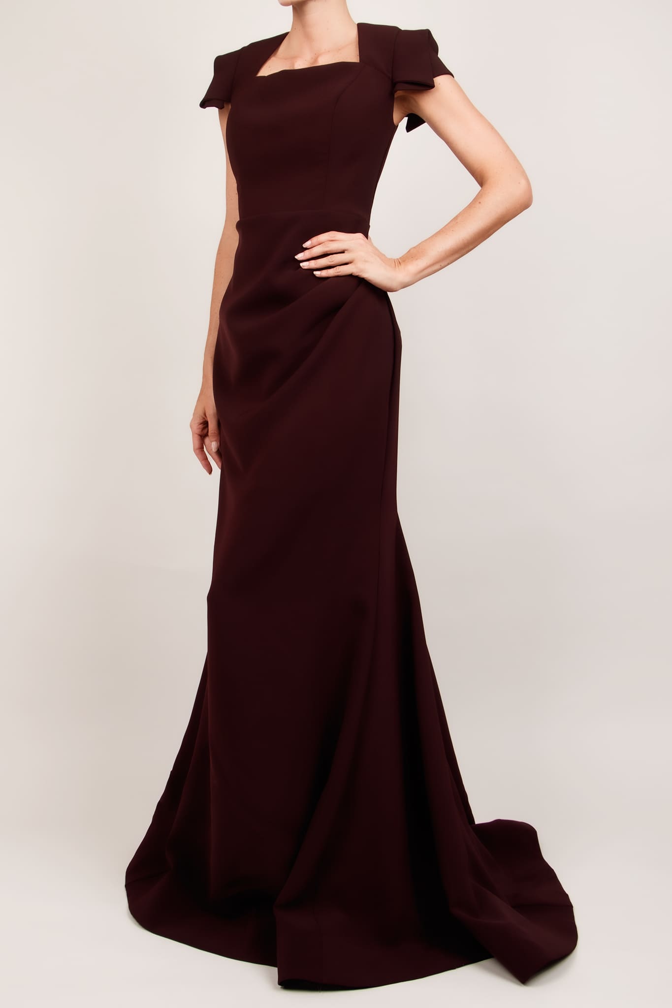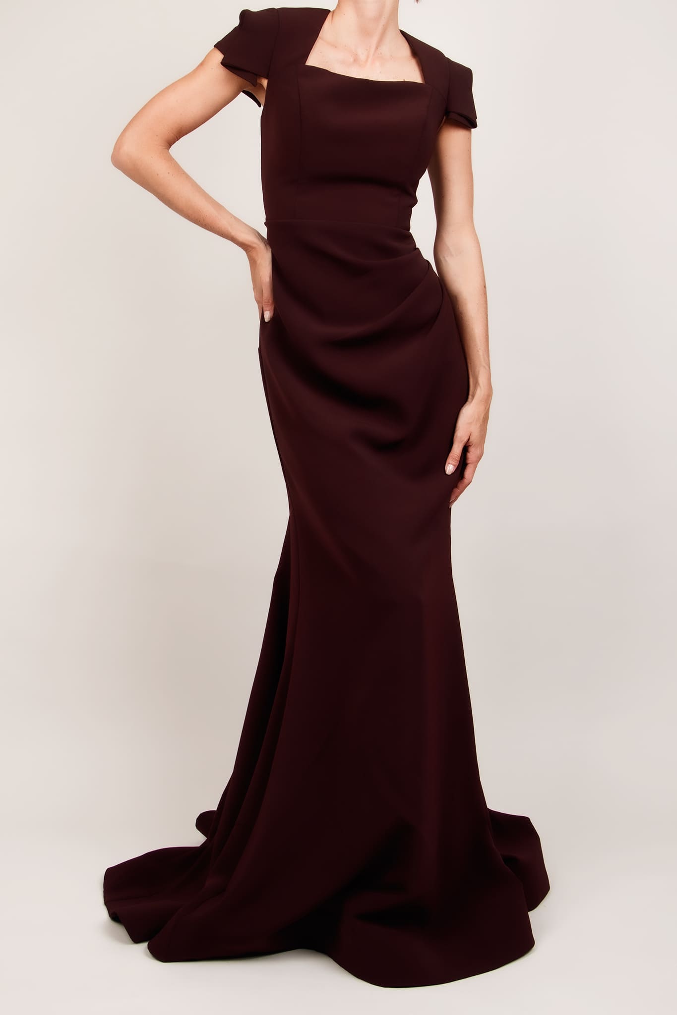 Vestido vino manga corta sirena