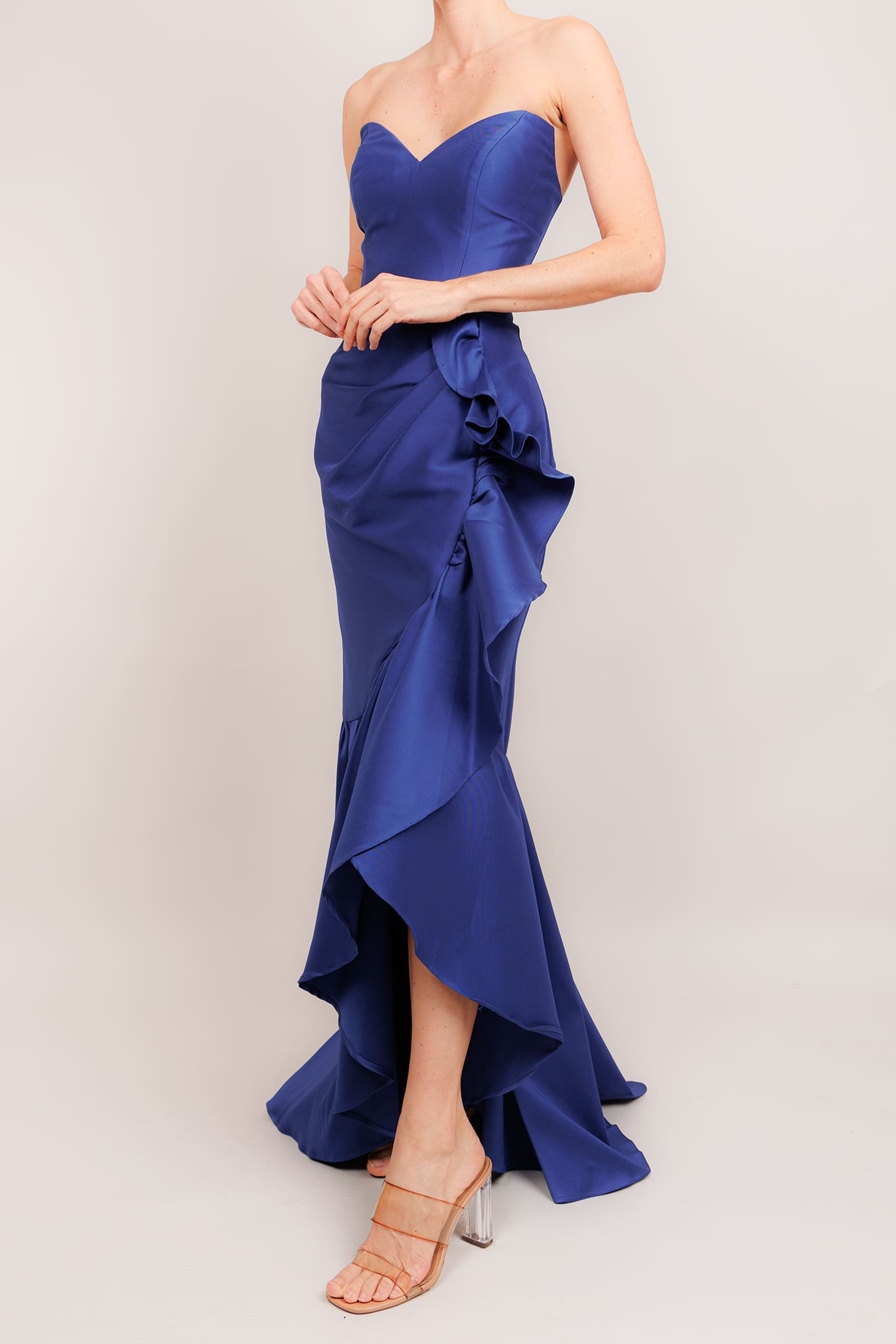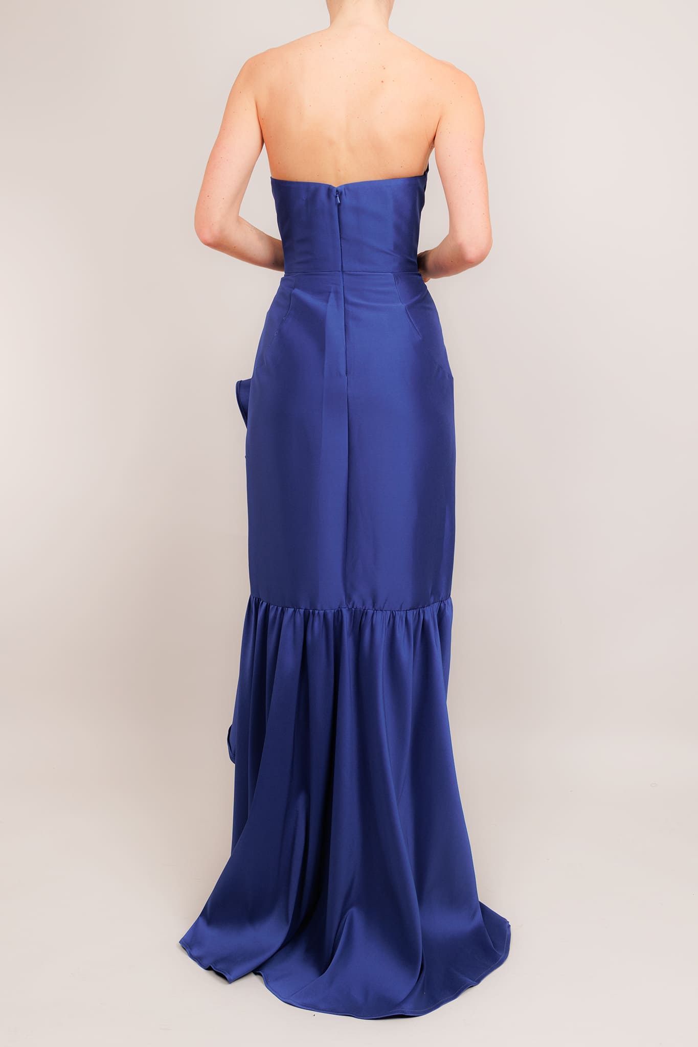 Vestido strapless abertura asimétrica indigo
