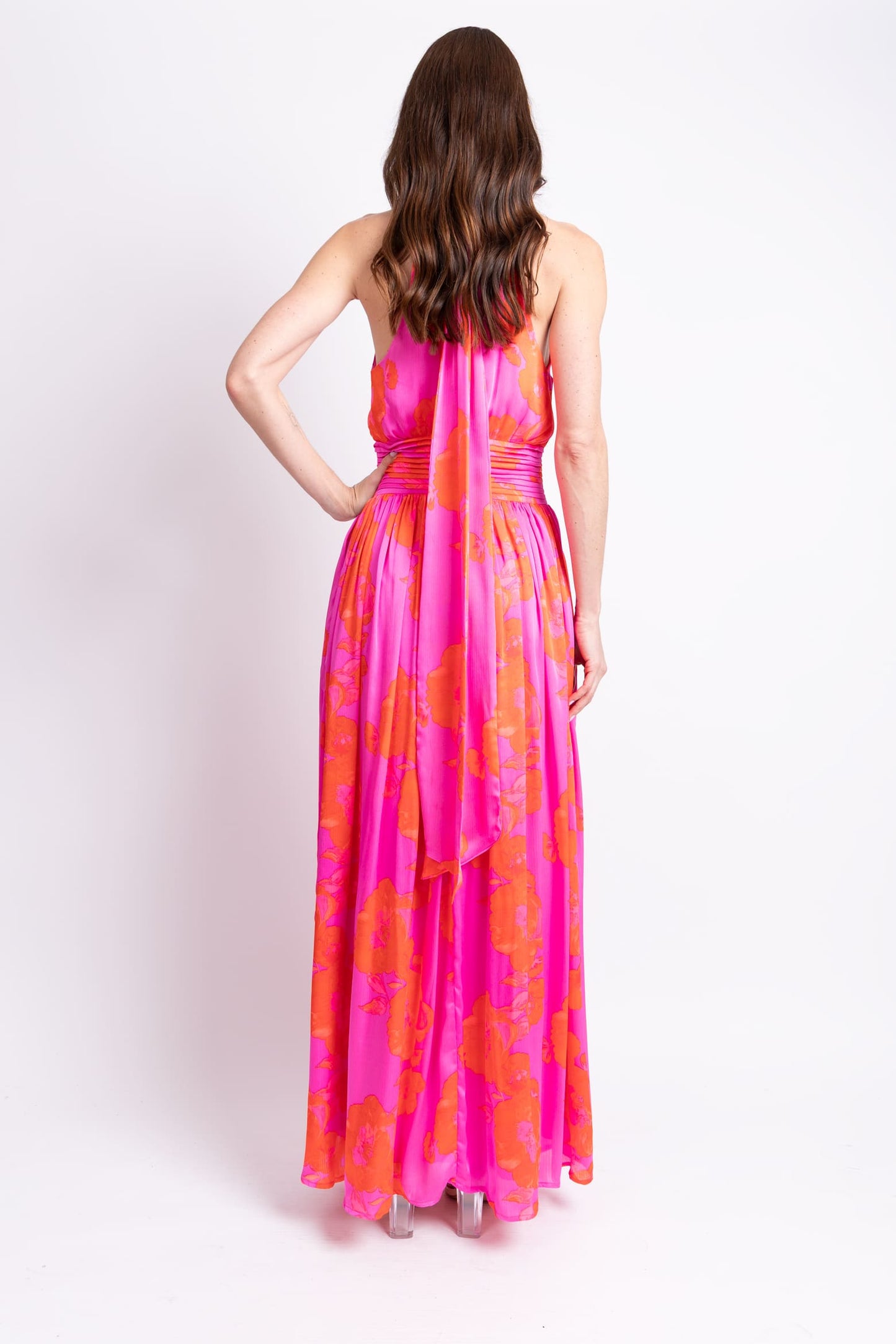Vestido halter print fuchsia flores rojas