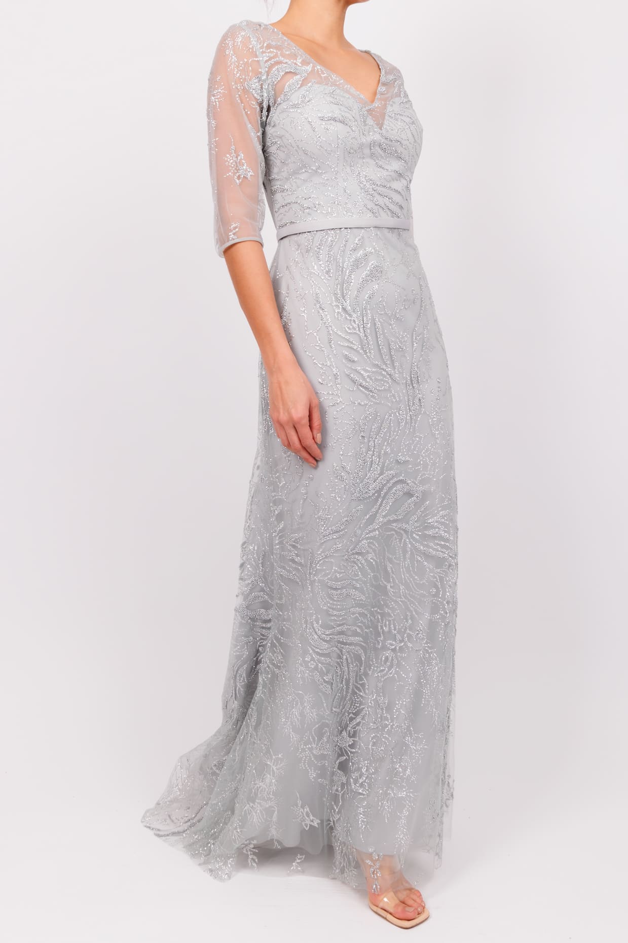 Vestido cuello v manga corta aplicaciones menta